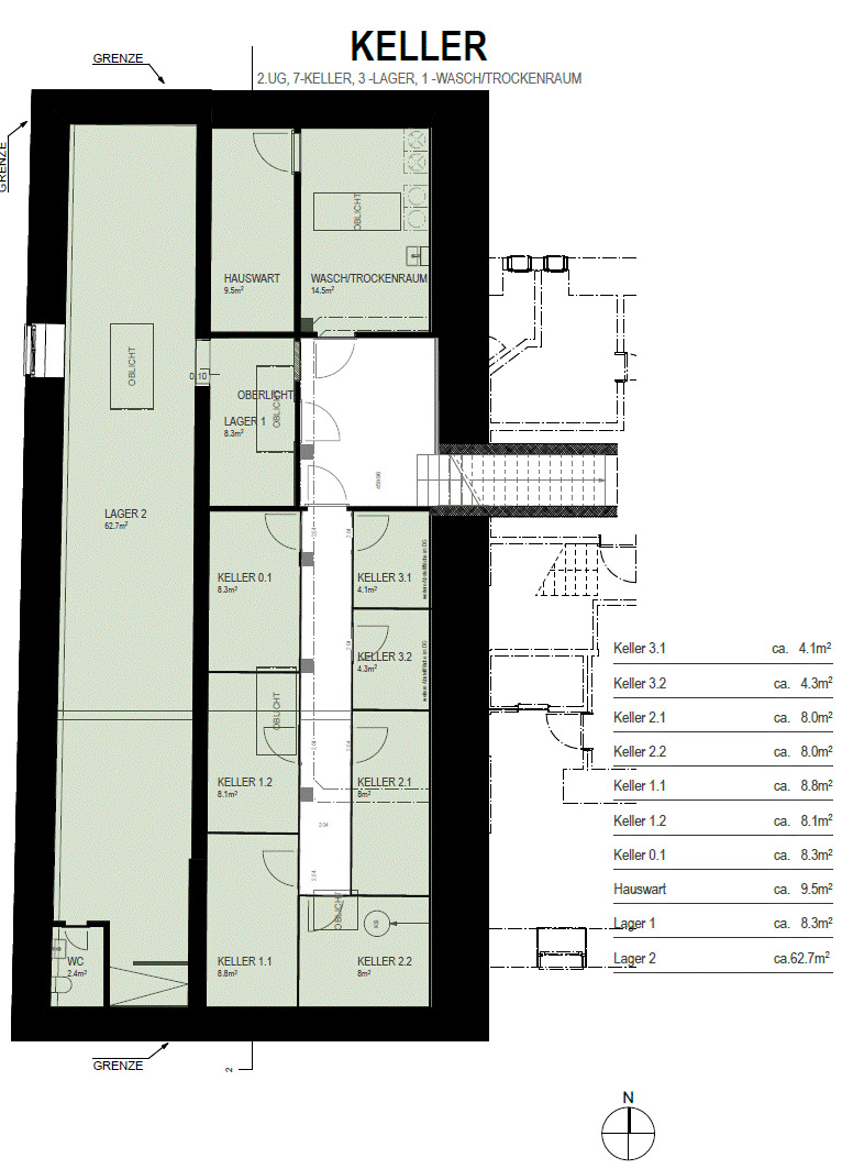 Lagerraum mit Oblicht – 68 m² im 2. Untergeschoss