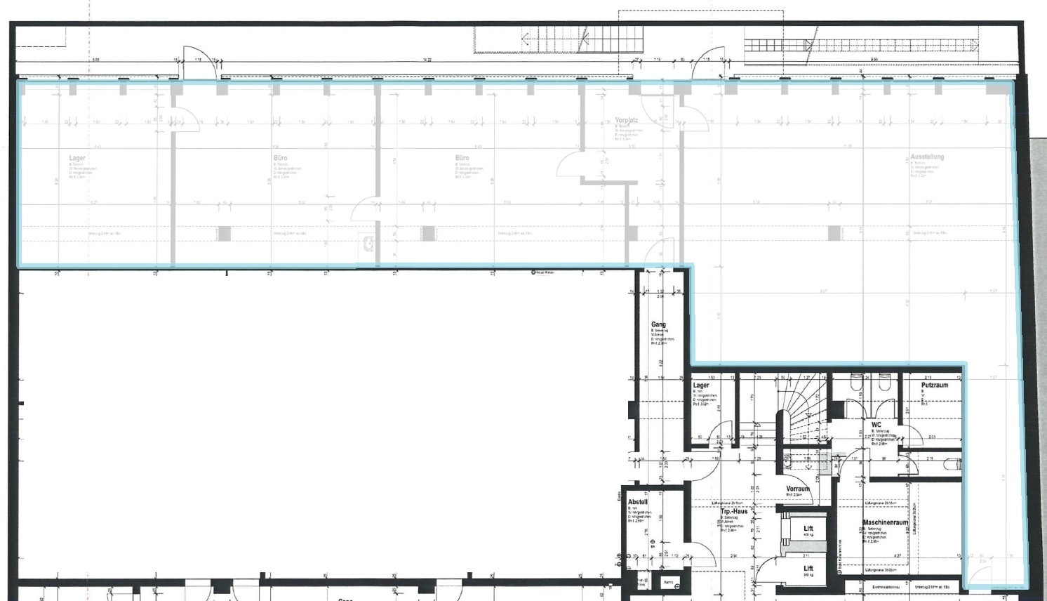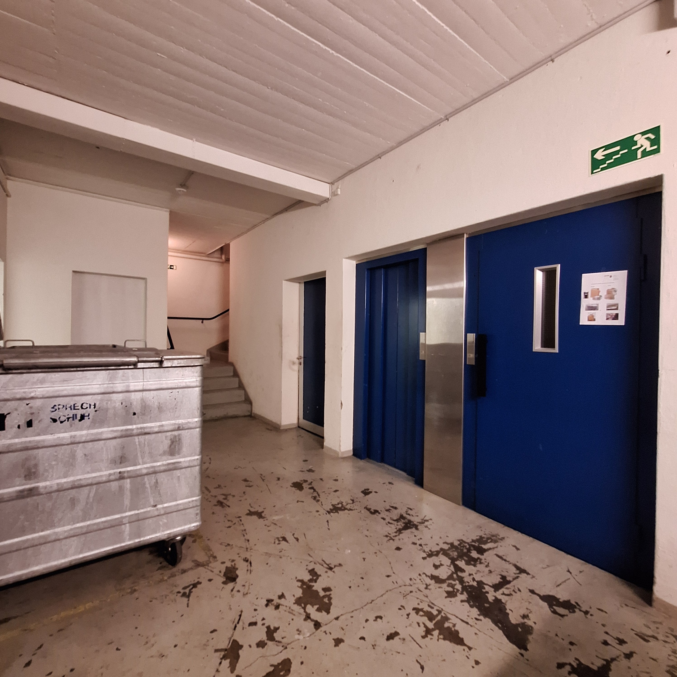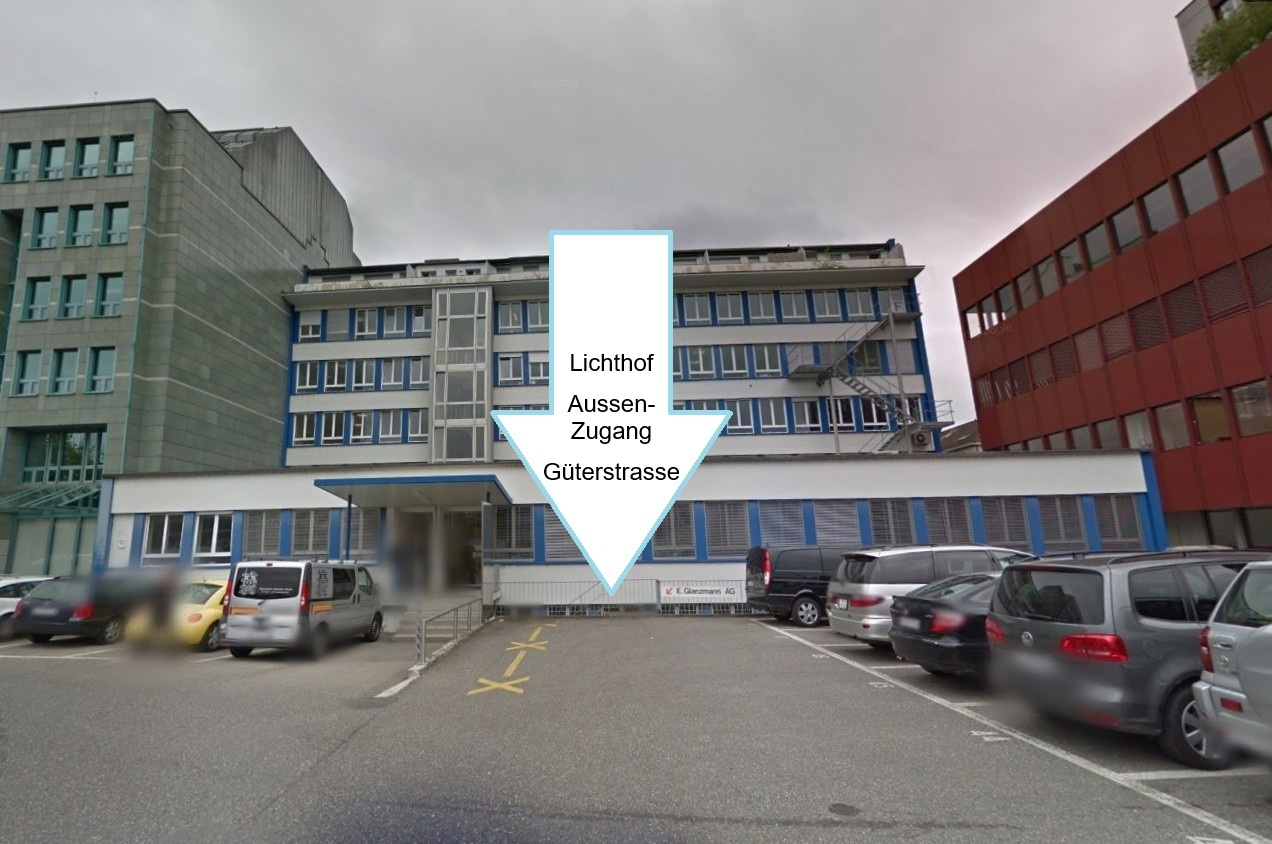 Der Zugang seitens Bahnhofstrasse erfolgt durch den Haupteingang und über das interne Treppenhaus zur unteren Etage oder seitens Güterstrasse an der Gebäuderückseite über den Abgang zum Lichthof.