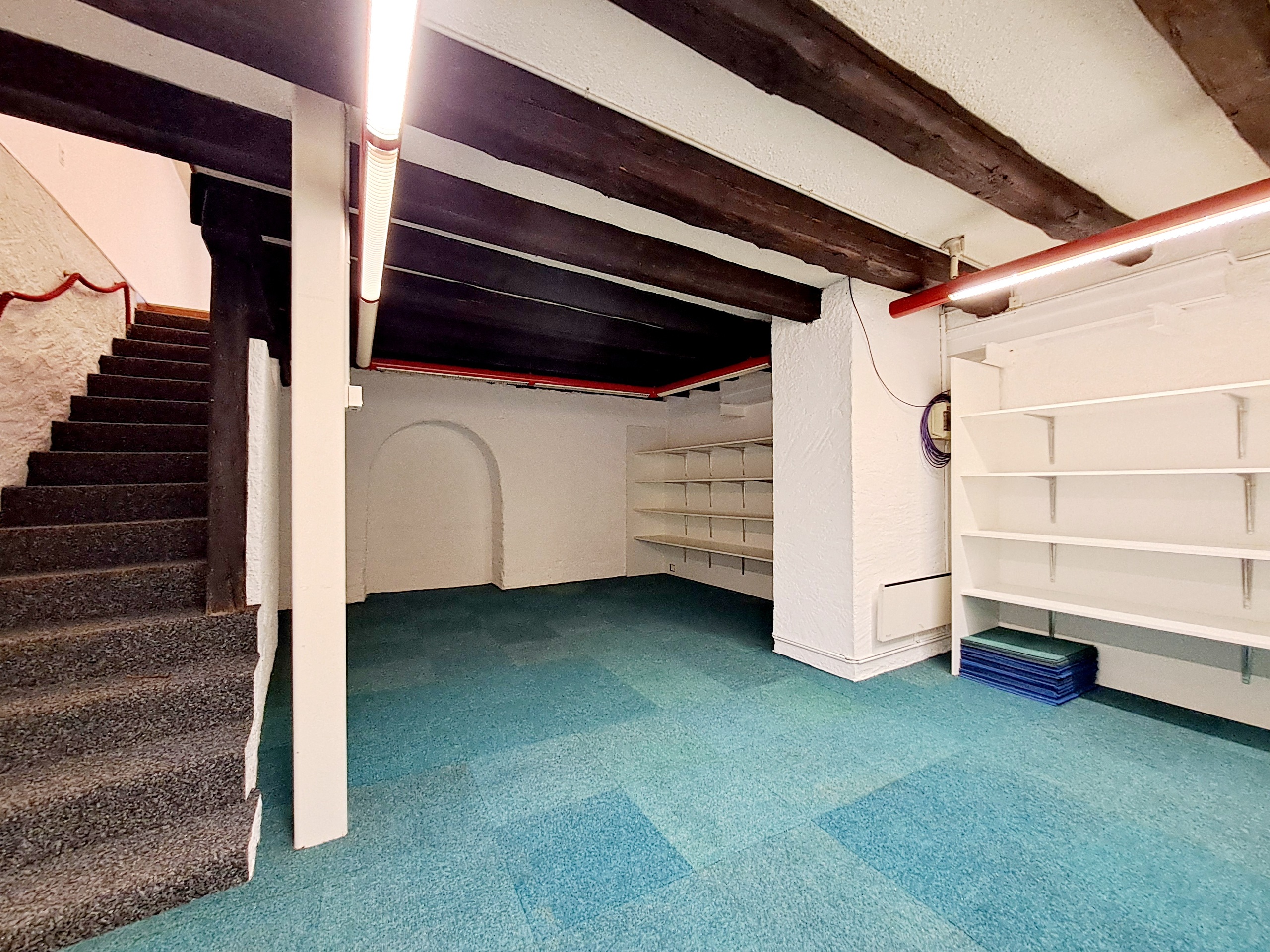 Au rez-inférieur, vous y trouverez un grand économat ainsi qu’une salle de conférence (au total ~60m2) où vous pourrez recevoir vos clients en toute tranquillité.