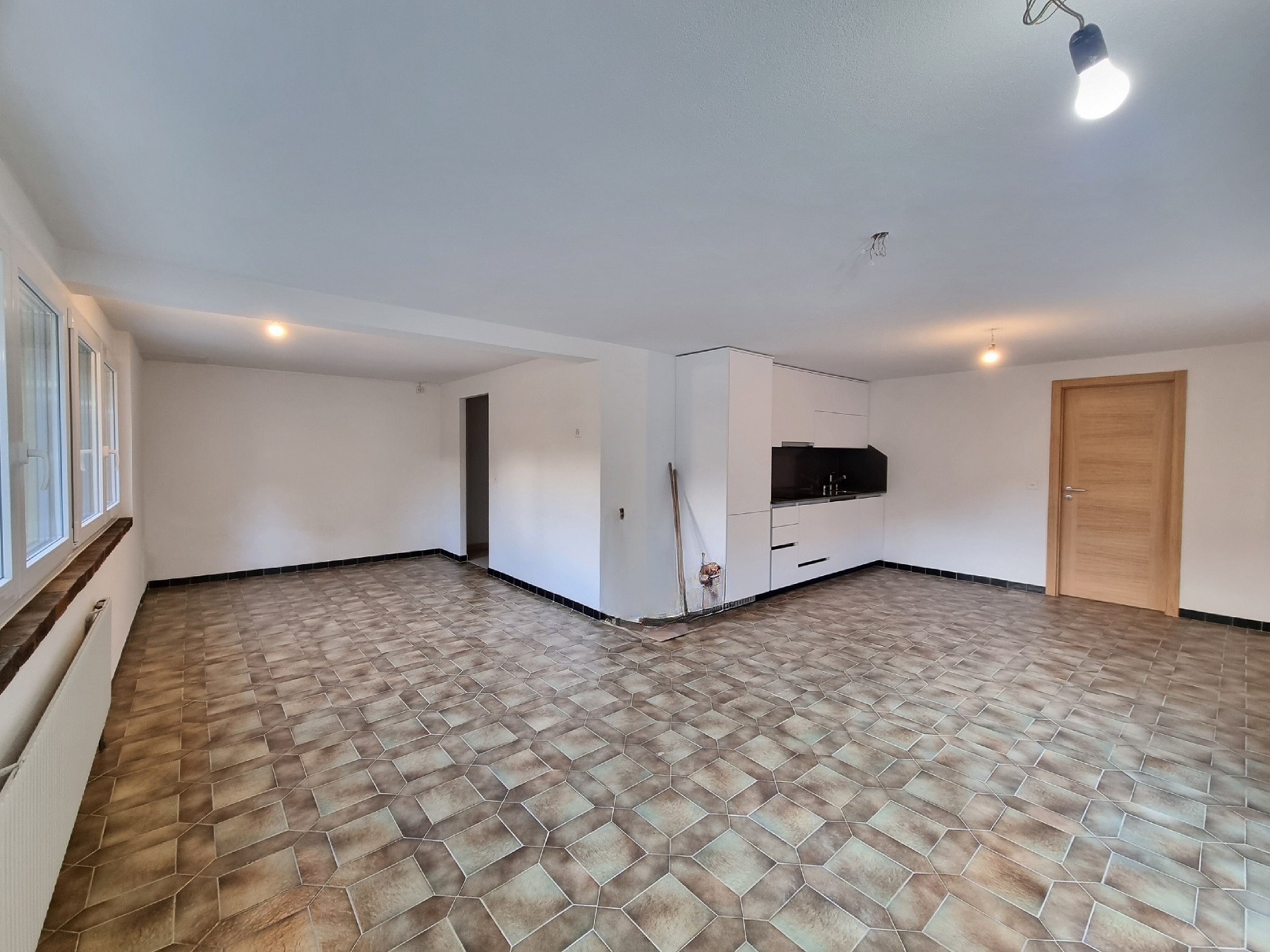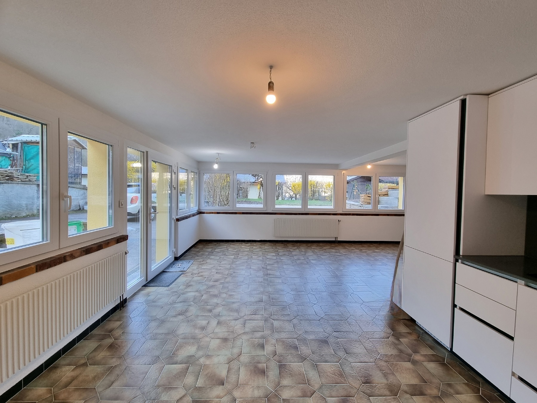 – Grande pièce très lumineuse avec nombreuses fenêtres sur l’extérieur – carrelage au sol