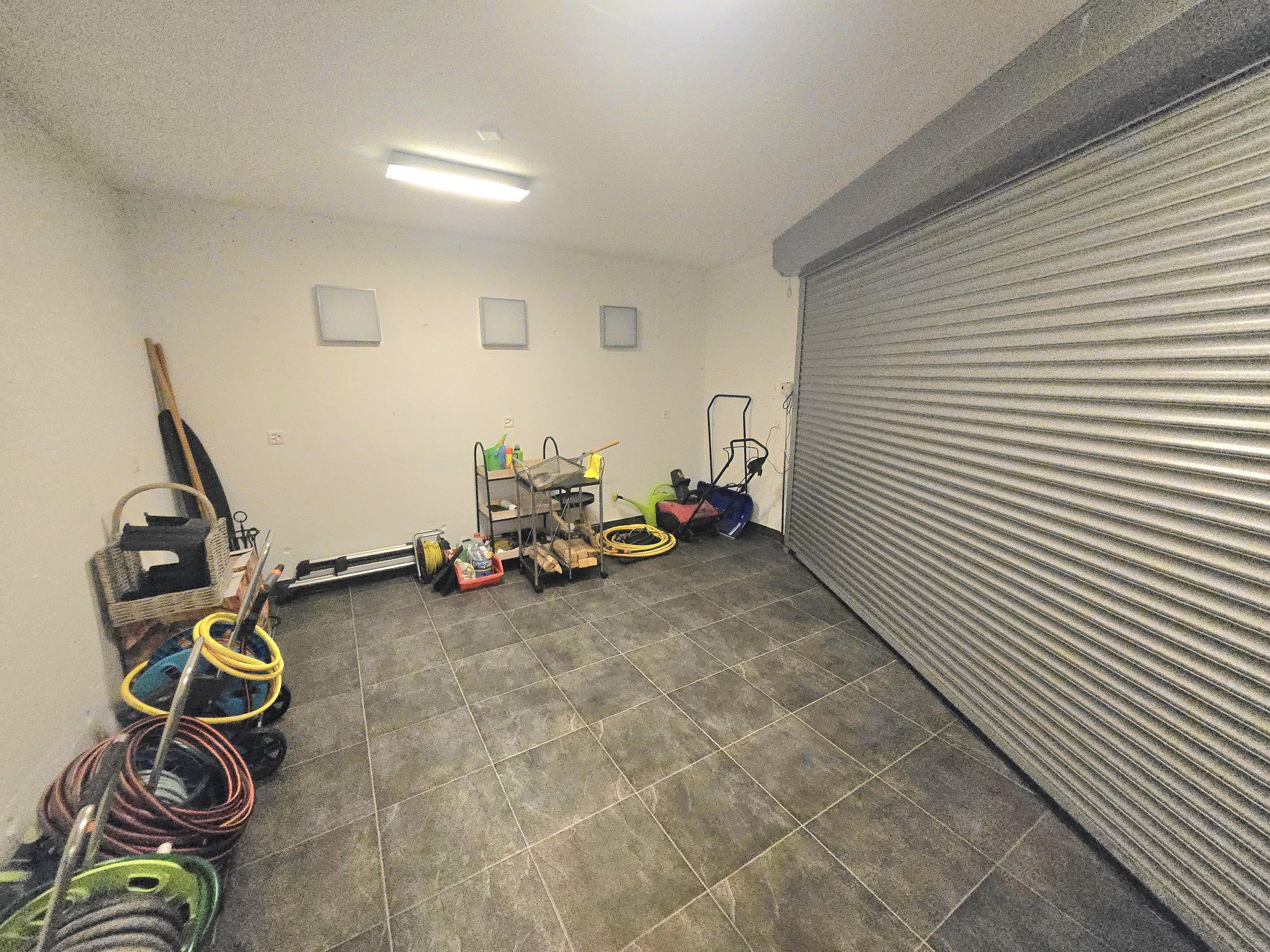 - Garage pour un stationnement pratique pour cinq voitures. Un garage plus petit sert de rangement pour les vélos, motos, fraiseuses, ….