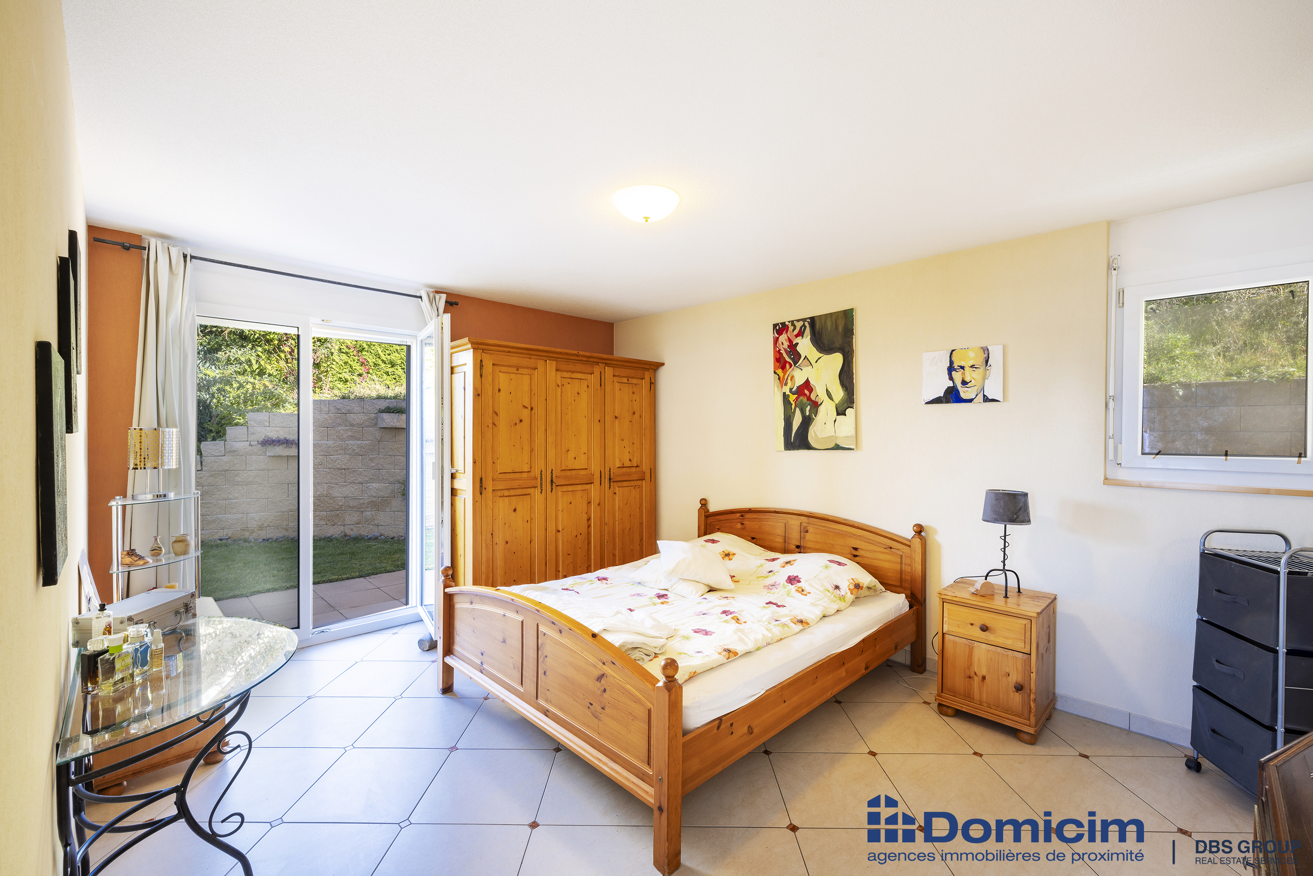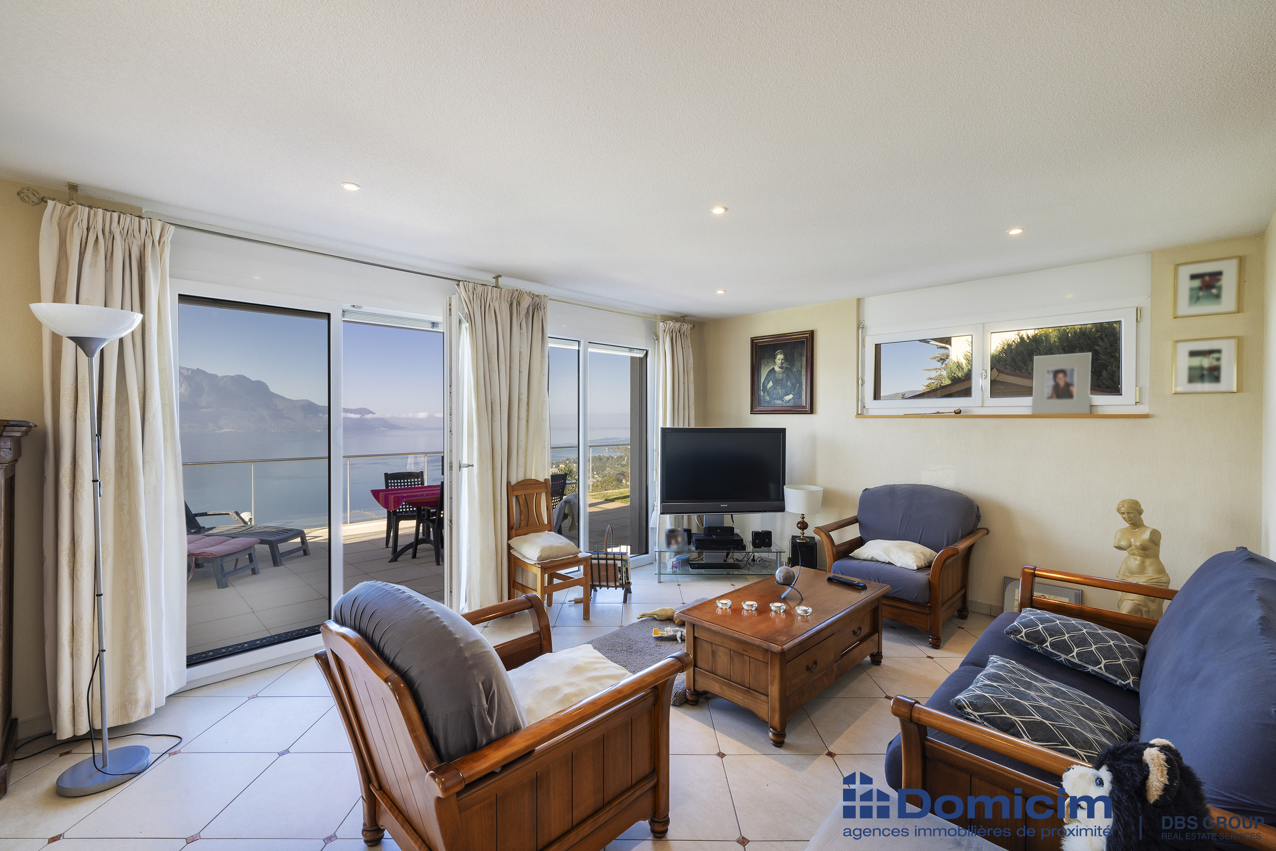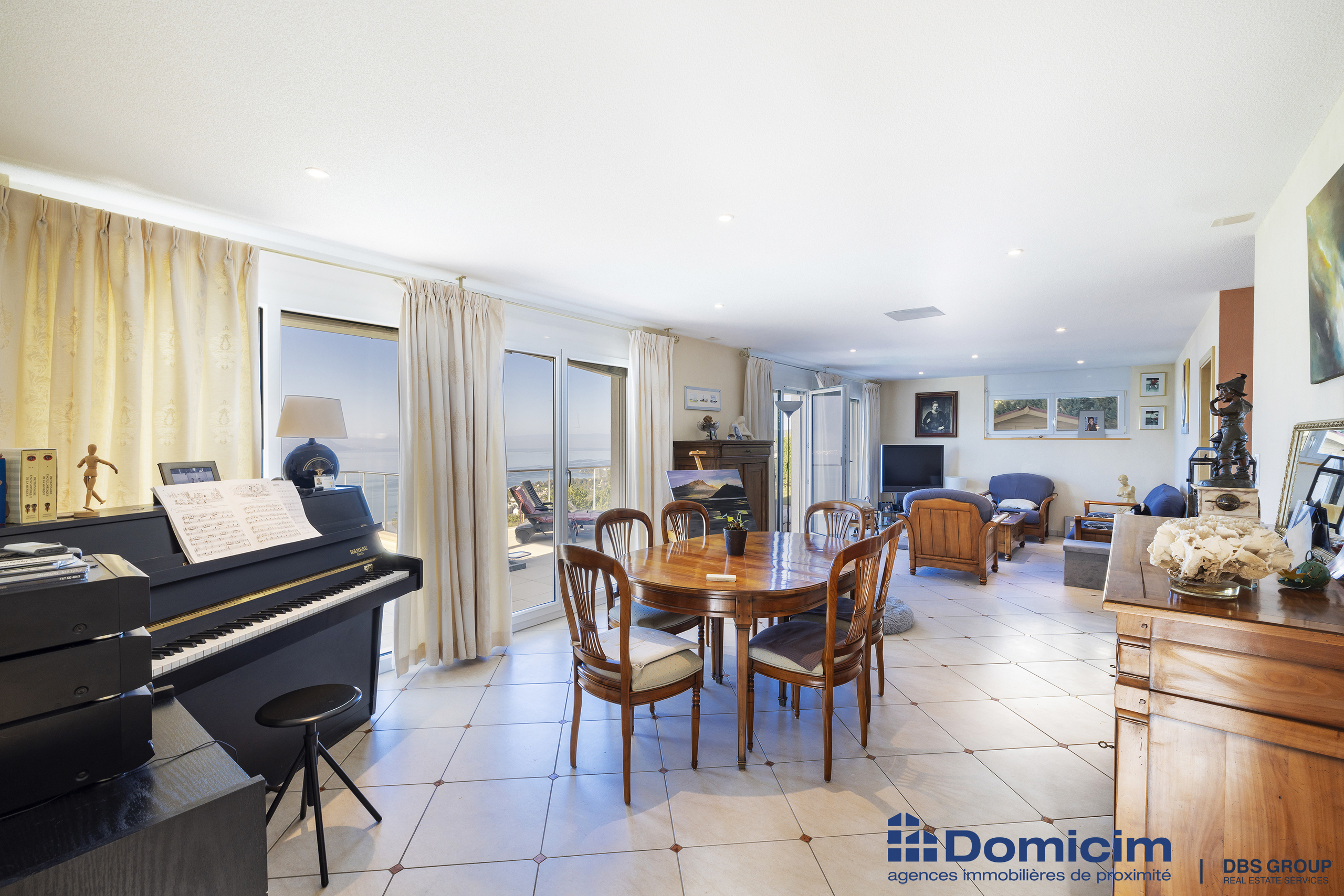- Grand séjour avec accès terrasse et piscine.